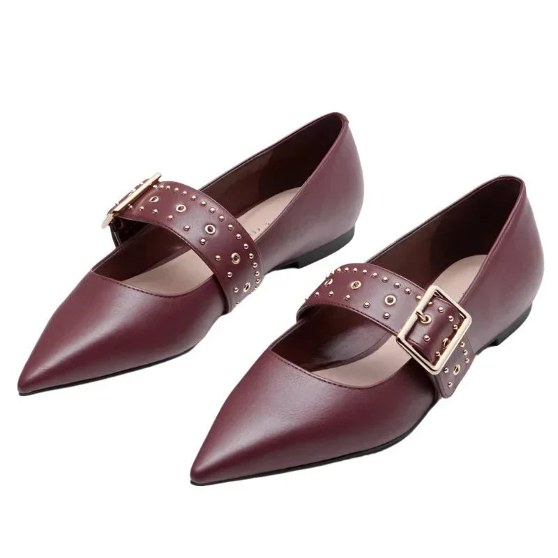 Skórzane baleriny z paseczkiem