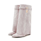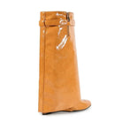 Eleganckie wysokie kozaki z unikalnym detalem klamry z zamkiem. Połączenie elegancji i solidności, idealne zarówno do codziennych, jak i formalnych stylizacji. Wykonane z wysokiej jakości materiału dla długotrwałego komfortu i stylu.