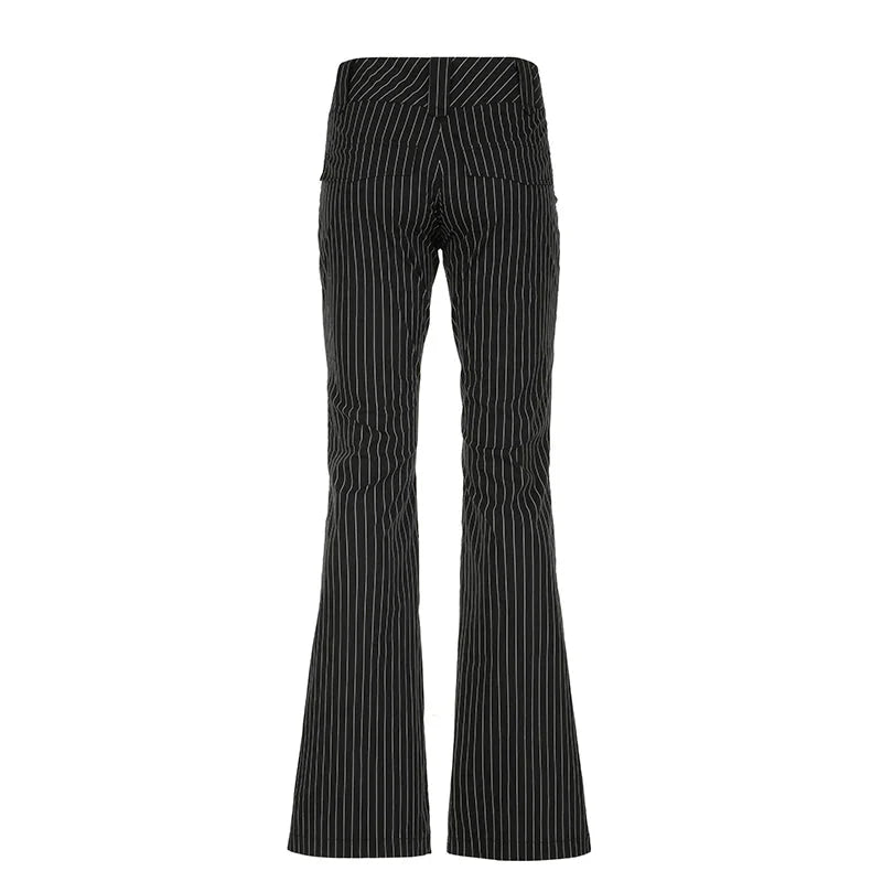 Eleganckie rozszerzane spodnie z nutą vintage i nowoczesnym stylem. Dopasowany krój z niskim stanem i rozszerzaną nogawką jest idealny zarówno do biura, jak i na nieformalne okazje. Klasyczny design i delikatne rozcięcie nadają każdej stylizacji wyrafinowany wygląd.