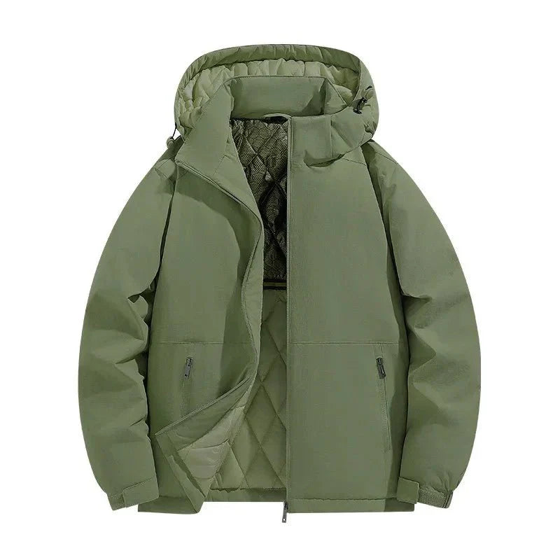 Wiatroszczelna i wodoodporna kurtka z ciepłą polarową podszewką oraz odpinanym kapturem. Idealna na chłodne dni i aktywności na świeżym powietrzu, zapewnia niezawodną ochronę i komfort.