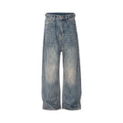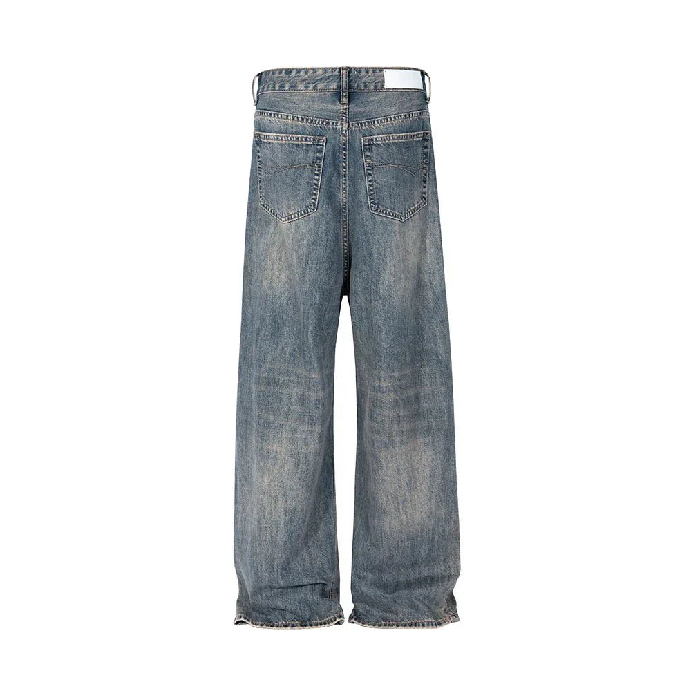 Luźne dżinsy w stylu Y2K high street. Charakteryzują się spranym, niebieskim kolorem oraz oversize'owym, prostym krojem, nadającym nowoczesny streetwearowy wygląd. Idealne do casualowych stylizacji.