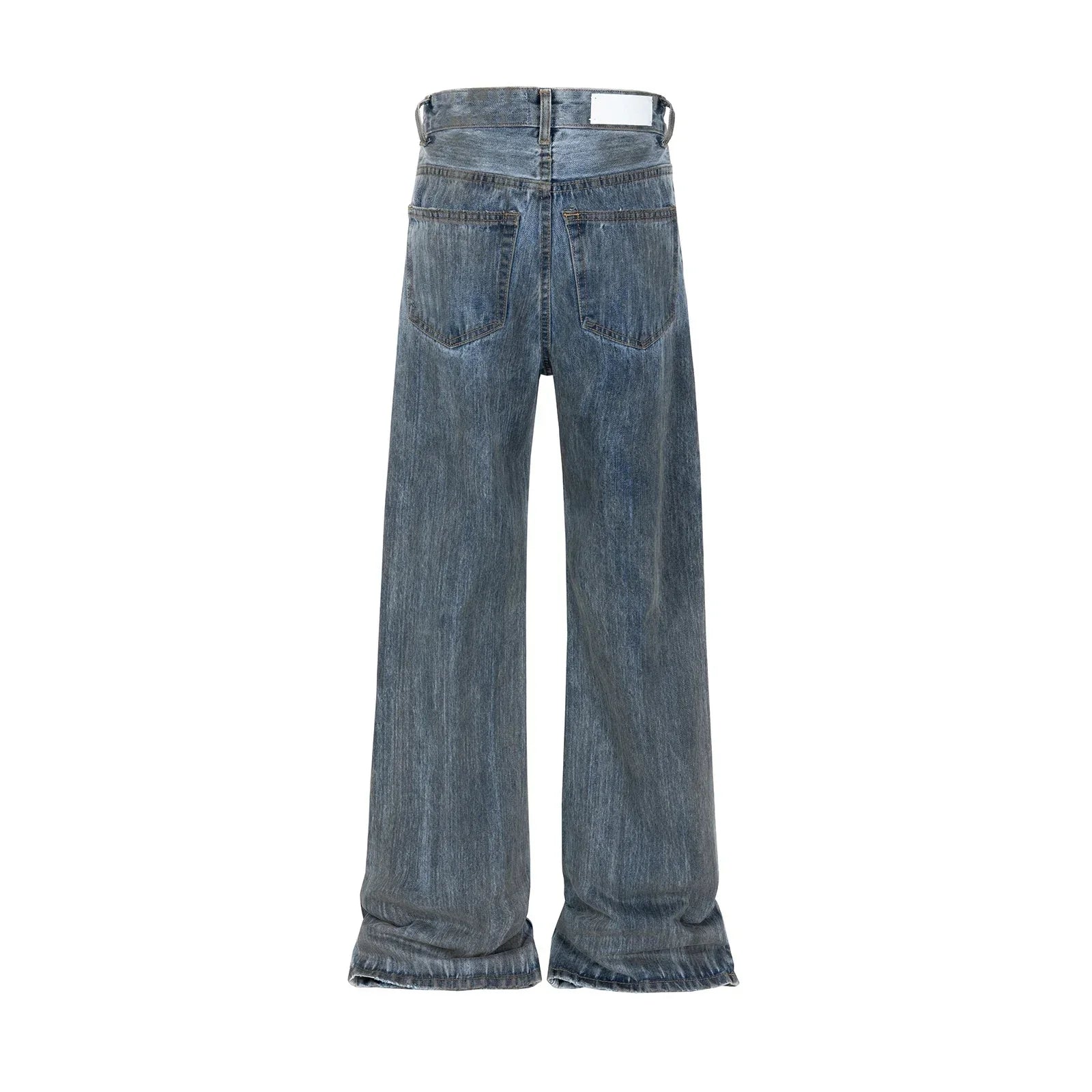 Dżinsy denimowe z lekko rozszerzanymi nogawkami i efektem postarzanego barwienia. Streetwearowy design z nutą vintage inspirowany modą Y2K. Idealne do codziennych, swobodnych stylizacji.