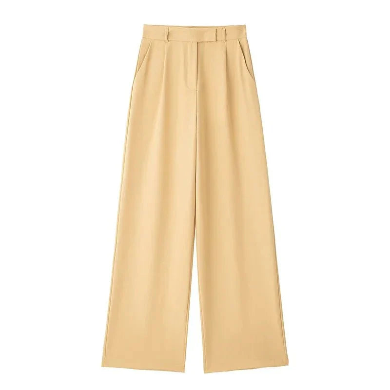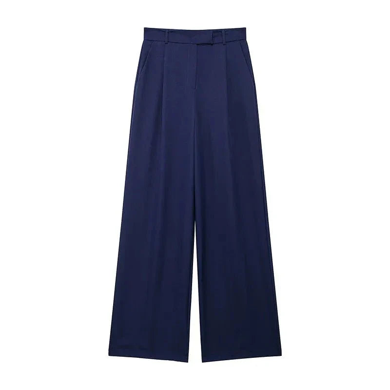 Stylowe dzianinowe spodnie z wysokim stanem i delikatnie rozszerzanymi nogawkami. Przedni zamek błyskawiczny nadaje nowoczesny charakter temu klasycznemu fasonowi. Idealne na co dzień i na bardziej formalne okazje.