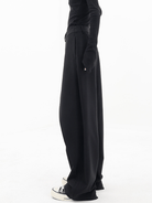 Te spodnie optycznie wyszczuplają talię, tworzą smukłą sylwetkę i nadają stylizacji wyrazisty charakter. Wysokiej jakości materiał oraz unikalny krój gwarantują odważny i uniwersalny element garderoby.