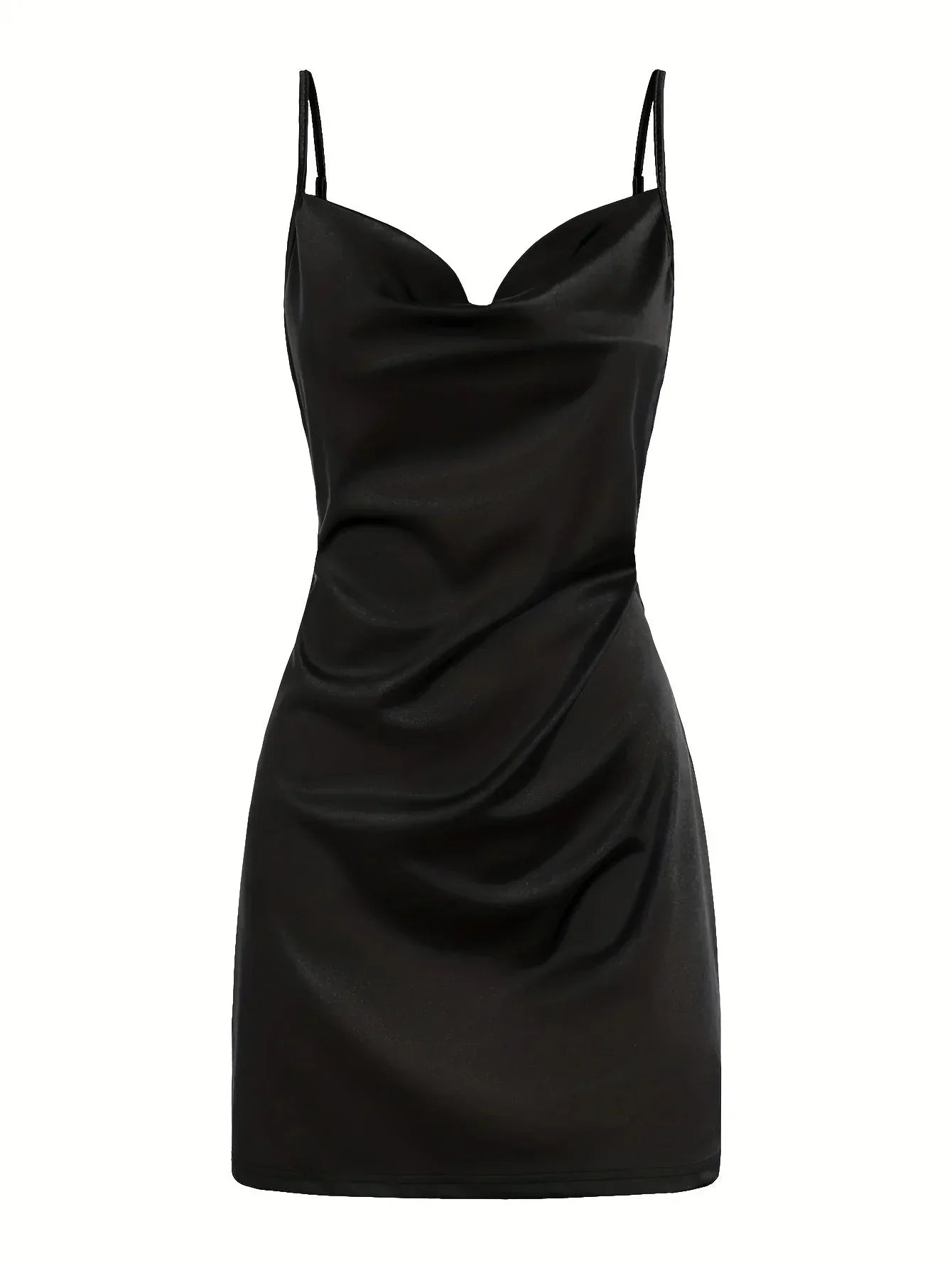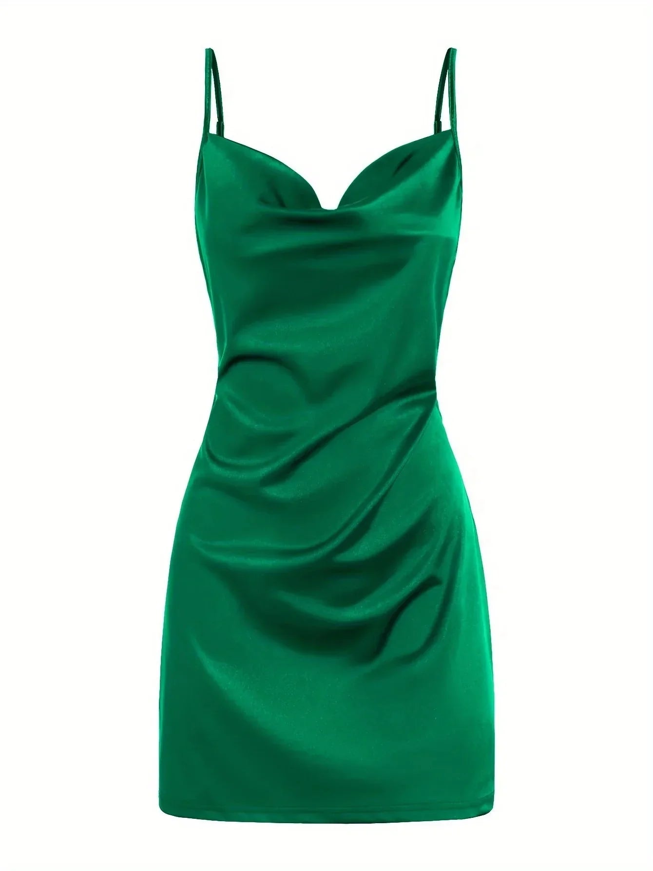 Elegancka satynowa sukienka midi o dopasowanym kroju i subtelnym połysku. Idealna na wieczorne wyjścia lub specjalne okazje. Delikatna tkanina i dyskretne detale nadają sukience luksusowego wyglądu.