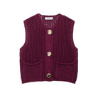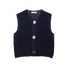 Uniwersalna i stylowa kamizelka bez rękawów z grubo dzianego materiału. Kamizelka ma klasyczny okrągły dekolt, duże naszywane kieszenie oraz zapięcie na jeden rząd guzików. Idealna jako lekka warstwa do casualowych oraz inspirowanych stylem vintage stylizacji.