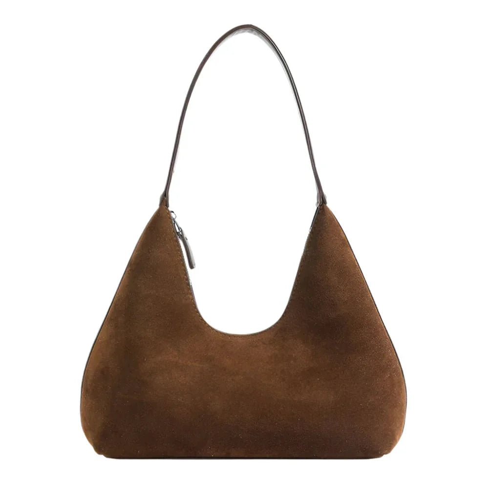 Zakrzywiona semišowa torebka